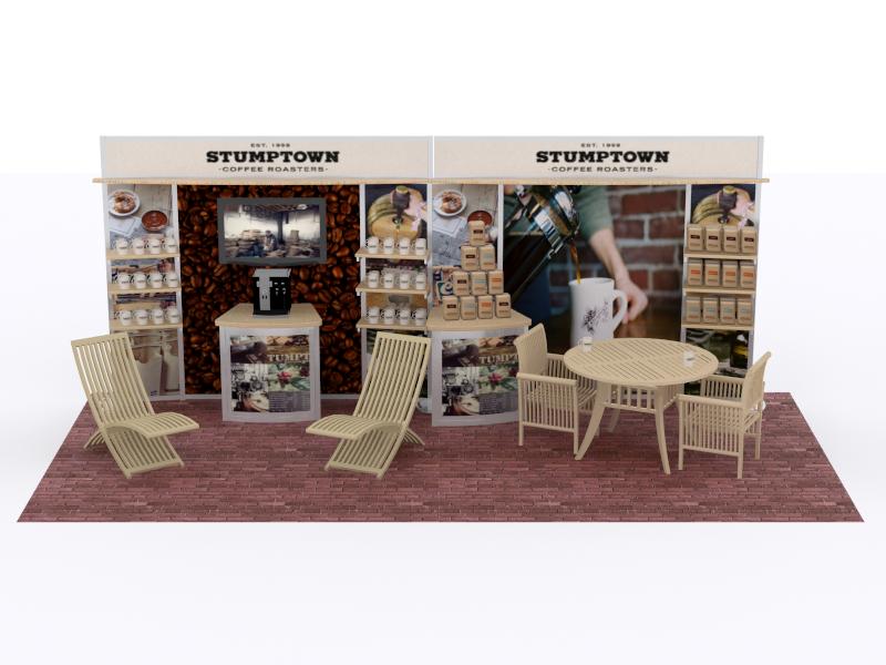 Hybrid is a relatively new category of trade show displays. Generally, hybrid displays incorporate aluminum extrusion, tension fabric, and other display components such as laminates, wood, Sintra, and other materials to create a tabletop, inline, or island exhibit.